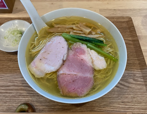 何かと仕草の可愛いらしい女性店員さんが食券を取りに来てくれました。 カウンター内ではこだわりの強そうな店主がいて味の期待が持てました。 思ったより早くラーメンが出てきたのには好印象でした。 具材はチャーシューとメンマとほうれん草でした。 メンマとほうれん草は小さく少なかったです。 ほんの気持ち程度入ってるくらいです。 なぜか白ネギを切ったものが小皿で別皿で付いて来ました。 そばで言うところの薬味でしょうか? 説明もなかったので、味変なのか最初から突っ込んでいいのかよく分かりませんでした。 スープは当然くどくないですが、かと言ってつまらないあっさりでもありません。 味わい深いあっさりです。 最初から最後までひたすら美味しいです。 当然のごとく完飲しましたが、しょっぱいと言う感想はありません。 貝の旨味と鶏の絶妙なハーモニーで飲まずにはいられません。 ラーメン好きの男性だけではなく、日頃あまりラーメンを食べない女性や、ご年配の方など老若男女に好まれる味だと思います。 麺は最近の新しいラーメン屋さんでよく見かけるような麺ですが、このスープには相性が良いです。 肝心のチャーシューですが、一つ一つは大きくありませんでしたが、さすがにチャーシュー麺だけあって枚数は多かったです。 鶏と豚の2種類チャーシューです。 鶏の胸肉の部分と皮のついた部分がありました。 豚も豚バラの部分とそうでない部分がありました。 個人的には鶏の皮のついた部分と豚バラの部分が美味しかったです。 ちなみにこのお店のご飯物は他のラーメン屋ではあまり見かけない、炊き込みご飯があります。 ここのラーメンには合うだろうなと思いました。 次は普通の醤油ラーメンと炊き込みご飯を食べてみたいと思います。 あと、お水ではなく冷たい麦茶だったのが、何気に嬉しかったです。