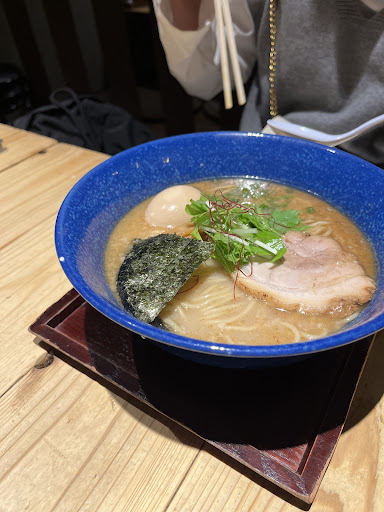 The base pork bone broth is not very strong, while the first bite is good, you won't feel much umami taste as you continue eating. The noodles are thin, curly noodles with a good texture, but the wheat flavor is a bit weak. The boiled egg is done to egg york half cooked and flaver is well soked. The sliced pork is cooked to be tender, but has a slight oily smell and is not very impressive. The atmosphere is not bad, but I wish the music was a...