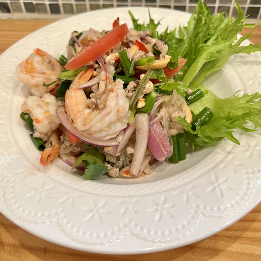 カオマンガイ、トウミャオファイデン、ヤムウンセン、ガイヤーン、をオーダー! 結果やばい全部美味しい😋 調理は全て女性が担当していましたが テキパキこなしていました。 トウミャオファイデンのタレも飲みたくなる感じ。心地よい味付け🥰 カオマンガイもご飯にもちゃんと鶏の味が染みていて鶏肉も柔らかい〜😋 ヤムウンセンも作りたてで温かくてハーブと野菜達、ナッツ、ピリ辛甘酸っぱいくて良い香り 美味しかった〜🌿 ガイヤーンは少し時間がかかります。 と旦那さんから。 あと7分くらいできます。と親切にカウントダウン🥰 皮はパリパリしててお肉は骨つきホクホク♨️