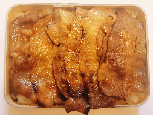 ・結論から言いますと、どちらも美味!買ってよかったお弁当!でした。 ・牛豚ミックスとなっていますが、暗闇で映画を見ながら頂くと、今食べているのが牛なのか豚なのか全くわからず笑 ただ、どちらも「旨い」! ・ぎっしり詰まったご飯。タレが程よくしみ込んだご飯。これもまた素敵なんです。冷めても旨い。 ・ご飯は結構な量があったのでお肉を控え目に、ご飯を多めに食べていたら、後半戦お肉がかなり余ってきて。最終的に気づいたのは、お肉とごはんの割合を気にすることなく、満足いく割合で頂いてもぴったり完食できてしまうお肉の量。つまり、お肉の量もかなりある、ということですね。素敵すぎます。