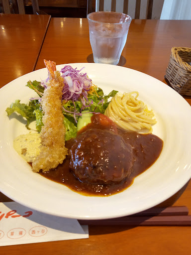 料理に関して星⭐3.5 ボーリング🎳を終えて、一人でお昼遅めのランチは何処にするか?と考えて14:30までランチタイムのスパーゴに行きました。お店の前にたっぷり12台分の駐車場🅿️があるのも理由の一つです。 ランチメニューの中から、ワンプレートに野菜サラダ・パスタ・海老フライ(1本)・デミグラスソースたっぷりのやや小ぶりのハンバーグが乗せてあるのを選びました。 シェフが1から作ってくれるハンバーグを席で待つことになります。ご飯は大盛(大盛無料),別に冷コーヒーとベイクドチーズケーキを付けました。合計1460円。 お昼過ぎ1時半に近い時間なのにお客さんは結構入っていました。幼いお子さま連れの若いママや小学生の姉弟を連れたお爺ちゃん、私の隣の席は大学生三人組がスマホをやりながら静かに料理を待っていました。スマホの無かった頃なら、大きな声で会話していたのでしょうね。 ハンバーグのデミグラスソースは、キメが細かく滑らかで,コクがある🎵もちろんハンバーグはスパーゴの看板料理だけあって美味しかったです。 昔、時々娘と食べに行った七間町のスパーゴのハンバーグを思い出しました。娘はいつも煮込みハンバーグでした。 食後スマホで、スパーゴのハンバーグを食べたことを他県で一児の母になっている娘にメールしました。