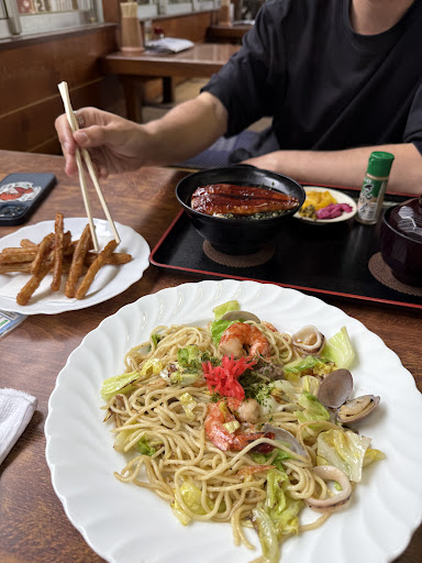 お値段も全体的に手ごろな上、おいしいです。ビールもあります。メニューは載せておくので参考にしてください。 何十年もここで働いているベテランのコックさんが調理してくれています。繰り返しますが、おいしいです。観光地によくある高かろう不味かろうとは一線を画しています。 そば・うどんのお出汁もちゃんとカツオの厚削りから取っているそうです。ハンバーガー350円のハンバーグも肉感があり、バンズもちゃんと焼いてくれてあるのでとても美味しいです。 海鮮焼きそばも大きいアサリと桜エビが入っていて満足です。 ごぼうの唐揚げもとても美味しかったです。