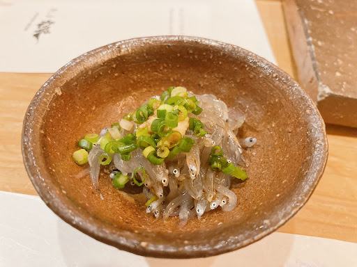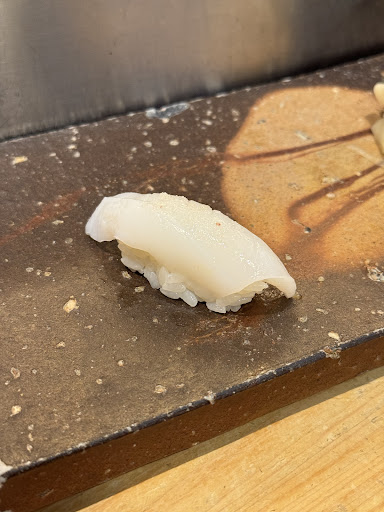◯鮨 金目鯛、中トロ、太刀魚、 白エビ、ボタンエビ、トロたく →どれも美味しかったです! 一番美味しいと思ったのはボタンエビ(北海道)と白えび(富山)でした。感動的でした。 静岡近海の駿河湾産では無いのですが。。