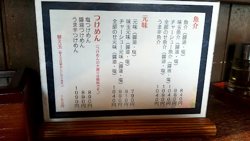 海老塩ラーメンがお目当てでしたが、 大盛りはできないそうです。 替え玉ができますが「細麺のみ』です。 なんで? 中太麺なのに、替え玉は細麺になるって。。。 茹で上がりに時間が掛かるからでしょうけれど。 だったら最初から大盛り用意してほしいですね。 つけ麺は玉数の増量が最初にできるのに。