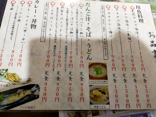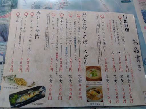 Read more彼女とのデートで初の帝釈峡! 絶対ここと決めて行きました! 注文したのは鮎の塩焼き定食(中)1500円 ワカサギの唐揚げ、だんご汁もち粉! 定食の味噌汁をだんご汁には変更出来なく仕方なくだんご汁を単品650円で注文! 川魚はめっちゃ美味しくて味噌汁も美味しかったです! だんご汁と味噌汁が同じ味だったので単品注文はもったいなかった!もち代! でも雰囲気もとても良...