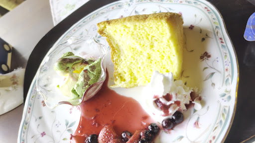注文して、少し時間がかかりました。温める音が何度かしていたので、シフォンケーキやプレートの食材を解凍されているようです。シフォンケーキはふわふわで美味しかったです。 ドリンクはアイスコーヒーで。