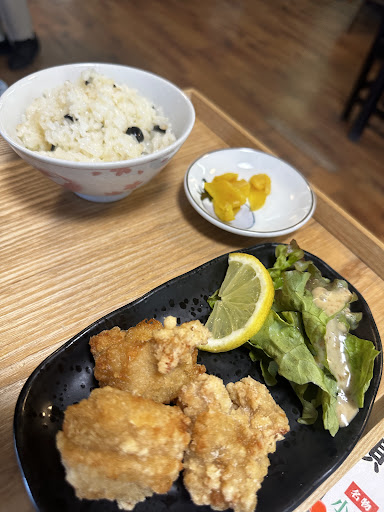 唐揚げも美味しい!でもオリーブオイルのご飯は美味。オリーブの実だけが乗ってる方がいい。オイルを白ごはんにあえてあったのがべっとりして微妙。かけたい人はかけるというシステムの方が良さそうに思った。ざるうどんは美味しい。うどんは讃岐うどんなので、しっかりコシがあって喉越しよく最高。