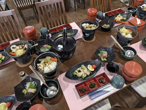 Read more非常美味的料理 有素麵和白飯 醃菜也很有風味 雖然吃不太出來是甚麼 但是調味都很好吃 鯛魚的生魚片 不愧是產地 很新鮮也很好吃 跟平常吃到的不一樣 配上紫蘇葉更是絕配 另外一種煮的魚 不知道是用怎樣的處理方式 幾乎沒有魚腥味 鍋裡的魚膠質比較豐富 雞肉的料理有勾芡的感覺 ...
