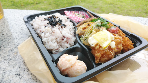 The entrance is at the back of the building. You should see a sign right outside the door. If you are in front of the building where the parking lot is, you can walk through the gift shop to the back and then go up the stairs. Menu changes monthly. We checked online before going, but because we went on the first of the month, the two rice dishes had changed completely. We were also lucky they were open because they have a calendar inside the upstairs entrance showing which days they close, and that these days appear to be irregular, but we didn’t see any such info online. While standing near the entrance upstairs, you view the menu, order and pay before taking a seat. We were told to grab our own cutlery when taking our seats, which was not a problem for us.