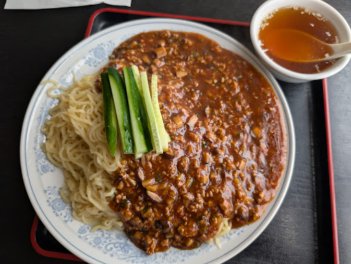 先日平日に伺うと中も外にも待っている人がいたので諦めましたが、今日は日曜日でダメ元で覗くと空いてました。平日のほうが平日ランチセットとかあり、混んてるのかもしれません。ただ店の前の駐車場に空きなく、やむなくドコモなどがあるところに駐車しました。帰りに他にもあるか聞こうと思いつつ忘れました。 迷いましたが、ジャージャー麺大盛を注文。ジャージャー麺は冷たい麺に温かい具にからめなから食べるようですが、個人的には温かい麺のほうがいいのではないかと思いました。具がもっと熱々ならよかったかも。 大盛りにしたのですが、途中からちょっと飽きてしまい、お酢をたっぷり掛けたりして何とか食べきりました。また具がたくさん余ってしまったので、大盛にせずに半ライスを頼んで具を乗せて食べてもよかったかも。 お茶がセルフですが、冷た...
