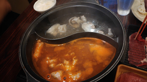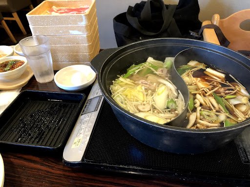This was fantastic shabu shabu. The all you can eat option was excellent value at around 2700JPY for unlimited sushi, pork, beef, chicken, xiao long bao, vegetables, waffles, soft serve, jellies and more. The variety of sauces is enough to please anyone. The robot servers delivering food to the tables with their cheery music was a hoot. It's loud, smokey and a...