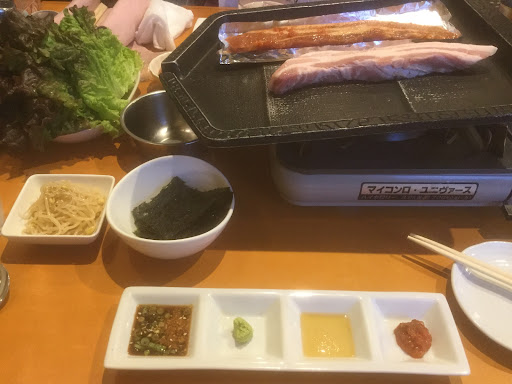 Read more土曜に行きました。 サムギョプサルを頼みましたが豚臭かったです。全体的に値段が高いです。 呼び出しボタンを押しても全然来てもらえず直接店員さんを呼ぶことが何度もありました。 色々な方がクチコミで書いてあった様に、接客が悪い店員さんがいました。中年の痩せ型女性、髪を1つに縛り声がしゃがれている方にお酒のことを質問すると、私酒飲まないんでわかりません💢とキレられました。それが飲食店の接客態度でしょうか? それとその方にお酒が残っているのに一言もなく下げられました。 他店員さんはとても接客が良かったのですがその1人のせいで残念な気持ちになりました。 写真はサムギョ...
