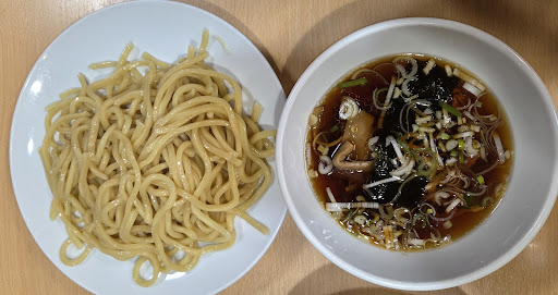 Read more【ニラそば、つけそば、ギョーザ、もやし炒め】 休日の午後2時、久しぶりに昭和店でランチ。通し営業なのはうれしい。 お店の前に駐車スペースは数台のみ。なのでイトーヨーカ堂に車を止めて来る人も多いのかなと思います。 テーブル席は6人がけ程の大きなボックス席になっています。 連れがつけそばにしたので初めてニラそばを注文しました。甲府のお店には野菜炒めがあるのに昭和店にはないんですね。ということでもやし炒めを。あとはギョーザ。 厨房ではもやし炒めを作っているのか盛大にファイヤーしていました。 3~4分でもやし炒めが到着。もやしがシャッキシャキでラードのいい香り。ラーメンのカエシを使っているんでしょうか、ここの炒め物の味付けはホント美味しい。 続いてギョーザ到着。 しっかり手作り、チェーン店のような工業製品のようなギョーザとは違います。 再び厨房でファイヤーが見えたすぐあとにニラそば到着。 ニラともやし炒めが乗ったラーメンです。炒め物の味はもやし炒めと同じ感じ。麺は黄色い細麺でプリっとした食感。ラードの風味がいいですねー。美味しい。胡椒をかけたり、やや薄味に感じたので後半にはつけそばのスープをちょっと足したり、酢を入れたりして味変。だいぶ好みの味わいに。完食完飲でした。 つけそばも相変わらずの美味しさ。鶏と昆布の旨味と酢のさっぱり感がいい。海苔が溶けて風味を添えてくれます。細切りのメンマもチャーシューも完璧。太麺のもっちり感もいい。スープ割りも楽しめる。やっぱりここに来たらつけそばですかね。 美味しかったです...