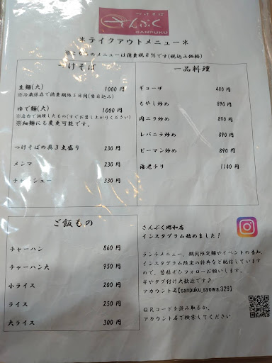 Read more山梨、甲府では有名なつけそば店の分店。本店の土曜日割引販売は、駐車場代を払ってでもお得感があり、何度も行ってるが、この昭和店では年越しそば的に大量13個のテイクアウト購入。味に本店と大差はなく美味しいが、息子夫婦だろうか、接客対応が酷すぎる。知り合いなのか商品を持たない老夫婦や子供、更にはダスキンか何かのマットの対応を優先し、余裕でお客を待たせ、こちらから言わないと小分けする袋の事前確認もできない。更に更に、通常のテイクアウトメニューよりも高く、別に説明があれば問題ないのに、それを予約の時も、支払いの時も、一言も説明しない。 コロナ対応のアルコールもなく「さんぷく」という名店の名前にあぐらをかいた接客のように感じてしまい、味はそれなりに引き継いでいそうだから、まだ星2つでとどめる。 立地は良く、少ないが駐車場もあり、気にしなければ問題ないと思うが、個人的には他人に薦めないし、リピートは躊躇するお店だ。 期待をしてただけに、食べたければ本店に行けば良いと思わ...