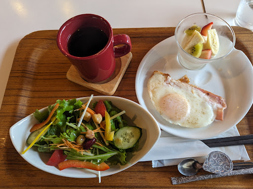 Read more朝早くから開いている老舗パン屋さん、なんと創業100年だそうです。 水曜日と第1、第3日曜が休み。第5日曜は営業してました。 モーニングにサラダプレートとコーヒーを頂きました。柔らかいチキンと柑橘系のドレッシングが美味しかったです!購入したパンも食べようかと思いましたが、お腹いっぱいになったのでお持ち帰りにしました。 パンはたくさん種類があって、お値段もリーズナブル。