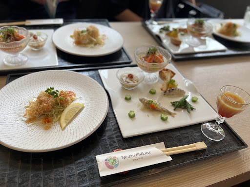 久しぶりに利用しました 四季音創作ランチ(20食限定)を頂きました 一の膳、二の膳、デザートと食後のドリンク 一の膳の盛り付けが上品で一口の前菜でとても美味しいです 茶碗蒸しも付いて、お腹いっぱいになりました 二の膳は本日は鰆のフライにポテトがトッピング、豚ヒレ肉と、茄子の揚げ物、キッシュ ご飯のおかわりも出来ます デザートはゴマのプリンにブドウのジェラート、芋クリームと梨がトッピング ゴマプリンがとても美味しいかったです どれも美味しいのですが、全体的に味付けは濃いいかと思いま...
