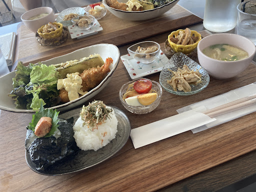 Read moreR4.12.25にOPENしたカフェです‼️ 美味しそうなおむすび🍙が食べたくて~ 「結びランチ」とスイーツ&ドリンク☕️を注文しました。 おむすび🍙はお米の味わいの深いとても美味しいおむすびでした。 プレートに乗った小鉢のおじゃこを和えた大根なますのお酢の加減がとても良く、美味しくて大感激しました🙌 どのお料理もやさしい味付けでとても気に入りました😋🍴💕