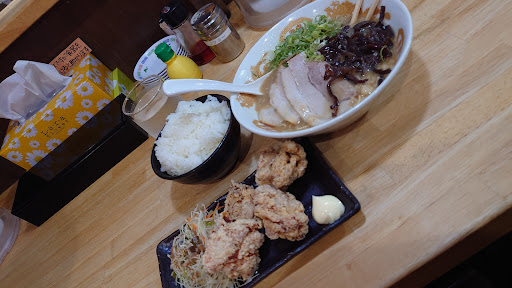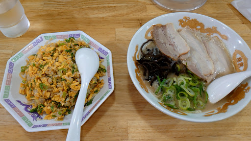 Read more豚骨ラーメンとチャーハンを注文。ラーメンは粘度の高い濃厚スープ。これぞ豚骨という味。チャーハンは味付けもいいが、卵の使用量がこれまで食べたチャーハンの中で一番多く卵好きとしてはたまらない。セットチャーハンにしては値段は高いが、量は多いので満足度は高い。満腹まで食べたいときにはお薦め。 駐車場が少なく停めにくいのが難点。
