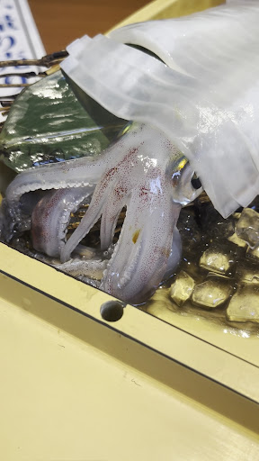 Read more四度目の訪問。初めは地元の仕事仲間に連れて行ってもらした。入り口を入るとエレベーターで上の階に通されます。お一人様は個室の二人席へ。これが良いんですよ♫オーダーはタッチパネルで。扉に通常メニューが貼られていてじっくり組み立てを考えられます。今回は「生きイカ🦑量り売り」がお薦めのようです。「小」をオーダー。枝豆で待ちます。瓶ビールは各メーカー揃えられています。生は黒ラベル。生きイカ登場。おっほー♫動いてるー♫イカが見てます。なんとも言えない気分ですが美味いです!コーリコリ。1/3はご飯に乗せよう。で、ゲソなどは天ぷらに。刺身や焼きにも対応してくれます。最初、この説明が無かったので食えないのかな?と少し心配でしたが。他に魚の子煮付け(ブツブツ美味い😋)とご飯(大)を頼み「イカ刺し&イカ天&魚の子煮付け乗っけ丼」に。たまりません♫最後に味噌汁でフィニッシュ!こちらは鮮魚だけでなく肉料理も豊富で組み合わせを考えたらキリが無いです。お得なお値段の物があるのでリーズナブルに〆られます。お店の人とは会計時ぐらいです。会話は。人見知りな人も関係無い個室。また次の徳山の夜が楽しみです!ありがとう...