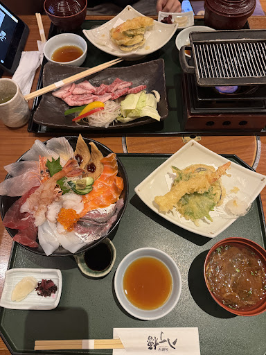 暫く行っていなかったのですが、久々に夕食を食べに来店しました。 なんと!定食メニューが夜膳となっていて5種類程度しかない、、。後は一品料理、うな重とうなぎ会席。仕方なく添付画像の豪快海鮮丼御膳と肩ロース鉄板焼御膳を注文しました。海鮮丼はのん太鮨も展開している藤間グループですので新鮮ではありましたが、サイレントチェンジで茶碗蒸し無し、値段のみアップ! 肩ロース御膳は、、、。画像を見ていただければ分かると思いますが、1/3が脂身だけのラードで赤身の部分も「なんだこれ?スーパー安売りと同等、タレは市販品」と客を逆撫でしてるレベル。値段相応の価値なし。少し格式高く、雰囲気も良い店だったのに非常に残念。うな重は、、、他県だと老舗国産うな重でここよりかなりリーズナブルで食べれるお店も沢山あります。競合店がないのでやっていけてるんだろなぁ、、。また行く店が一つ消えました。来客は年配の方が多くお金にゆとりがある方がメインなのでしょう。価値観は...