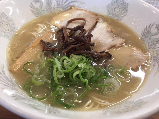 The plain pig bone soup ramen is to die for but the (peppery?) "black ramen" (kuro ramen, 黒ラーメン) is also an excellent, spicy pick-me up. Both are great after cycling there over the mountains to get there, as I...