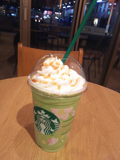 2018.4.7(日)昼 抹茶クリームフラペチーノベンティ594円を ホイップクリーム多めとキャラメルソース を無料で追加して貰った。 20人くらい並んでいた。 店員さんにホイップクリーム多めにしたら、 ホイップクリーム好きなんですか?と 質問され、コミュニケーションをしっかり 取ろうとする感じの良いお店だなと思った。
