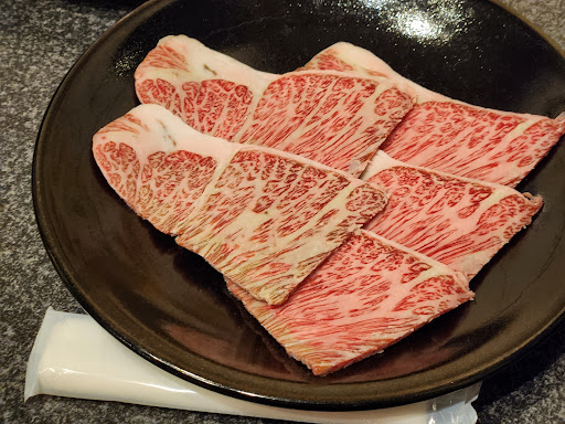 the best yakiniku I've had in my life. absolutely great cuts of meat, even if you don't order the black wagyu the normal beef cuts are great and affordable (see photo, the meat on the grill is a normal cut of beef, it still looks so good). The black wagyu was expensive but also so worth it. If you don't want to blow the bank though, you're not missing out if you order their 980¥ premium beef cuts. They're wonderful too. Their pork was also a highlight for me, melts in the mouth and absolutely delicious. Must try if you're in the Lake Toya area. Very short drive from the...