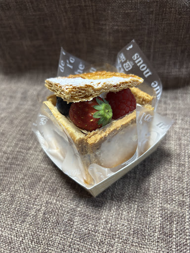 Read more2025/03/16来店。 期間限定苺のミルフィーユ購入。 帰宅後開封。悩む。どう取り掛かろう。まずはパイ生地を上部、左右、前後の順に1枚ずつ剥がし、スプーン代わりに生クリーム、苺、カスタードをすくいながら食す。楽しい。美味いのは勿論だがとにかく楽しい。何をどれぐらい載せるか考えるだけでワクワクする。気がついたら全て無くなり至福の時間へ。 有意義な...