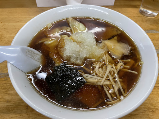 Read more以前テレビで有名芸人が紹介した寿ラーメン そんなに興味が無かったが近くへ行く用事があり初訪問 15時過ぎに入ったが待ち時間は無いものの 店内はほぼ満席 カウンター席が空いていたので座ると小生の隣には仙台四郎の置物が鎮座 ラーメンの注文は評価が高いワンタンチャーシュー麺🍜 見た目 味が濃そうだがオロシ玉ねぎのトッピングも相まってか意外にもマイルドな口当たり。 旨い!なんか遠くに記憶しているような懐かしい味としっかりとした縮れ生麺 竹岡式ラーメンのベースとなるチャーシューはトロトロ! ワンタンは小ぶりのチルドワンタンに似た食感だが丼の中で主張し過ぎず数枚が浮いてる。 いやー このラーメンなら千葉まで毎週食べに来てもいいかもね🍜ww それに付け加え店内で働くおばちゃん達のキビキビした動きと気遣い そして楽しそうに働いてる後ろ姿 うんウチの会社にスカウトしたいくらいだww またこれだけの繁盛店ながら厨房も綺麗! 寿ラーメン🍜久々のマイヒットでした。 次回は嫁さん連れて来ようっと。すす 再訪追記 ワンタンの味を確かめるべく再訪 と、言うのはチルドっぽいワンタンが気になり確かめに来た ラーメンに数枚浮いてるワンタン スープを切りワンタンだけを口に運ぶとワンタンの肉自体には殆ど味はついていない だがこの主張していないワンタンがスープと絡むとちょうど良い感じになる なるほど この様な取り合わせもアリだと感じた。気がついたらスープまで殆ど飲み干してしまった。 暖冬の二月上旬午後3時過ぎに4度目の訪問。今回はここのラーメンを食べる目的だけで東京から食べに来た。 午後3時過ぎだと言うのに店内は満席 やはりこの店の人気は衰えていないようだ。そしてお店のオバちゃん達はキビキビとマイペースで仕事している。...
