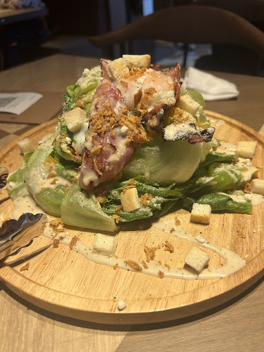 【残念ポイント】 ・せっかくワインのこだわりが強くお酒類が美味しい&価格帯も最高値で赤16000円とかのボトルがある割に、料理が酒飲みのツボを押さえていません。酒のつまみにしては全体的にかなり味が薄くぼやっとしています。ラインナップはどれも美味しそうで良いのですが...💦塩胡椒がテーブルにあると良いですね。特にシーザーサラダや生ハムは胡椒必須です。 ・当方相当な酒飲みですが、お値段控えめのワインもレベルが高く良かったです。一番高いボトルワインもぜひ頼みたいくらい美味しそうでした。ですが、そのような高価格帯のボトルワインを頼むなら、それに合う料理が必須です。ワイン好きだけでなくぜひ酒飲みの意見も取り入れた料理&味を考案頂きたいです!今後を非常に期待しています☺️ ・ミックスナッツのパルメザン焼き?は窯焼きでパルメザンがカリカリと書いてあったけど、塩気もなく油っぽくて食感も悪く美味しく無かったです。塩味のをそのまま出して欲しいです。 ・生ハムの添え物の生フルーツはワインのツマミにで出すのであればドライフルーツ等乾き物が良いです。 ・お通しのレーズンパンの揚パンは揚げたて熱々でパン自体も美味しかったです。おやつならすごく嬉しいのですが、お通しやつまみにするには油っぽくて重いです。初手ならガーリックトーストとか、こんがりチーズや胡椒のしっかり効いたパン耳...