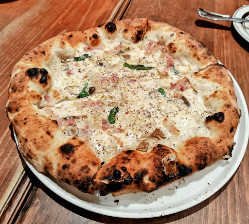 橋本愛似の娘がテイクアウトしていたマルゲリータと生ハム&キノコのピザを頂きました。 正直ピザはあまり得意ではなく、妙にチーズが濃すぎたりトマトが主張しすぎたり生地とのバランスがおかしかったりと、進んで食べたいモノでは無かったのですが、こちらのピザを頂いてビックリ! 語彙力乏しい自分が情けないのですが、シンプルに美味しい!チーズ含めて具材・生地・味付け・焼加減など全てのバランスが恐らく物凄く高いレベルでマッチしているのでしょうが、とにかく美味しいです! しかもピザの風味は当然ありながらもアッサリしていて、お腹のモタレもありません。とても不思議な感覚! 昔、キッチンカーで営業されていた時も何回かテイクアウトしたことがありますが、その時から美味しかったものの店舗営業でのテイクアウトは全く別物の美味しさです! 「あそこのピザを食べたい」と思える初めてのピザ屋さんになりました!これは是非店舗に食べに行かなければ!!(店舗がいつも賑わっている訳がわかりました...