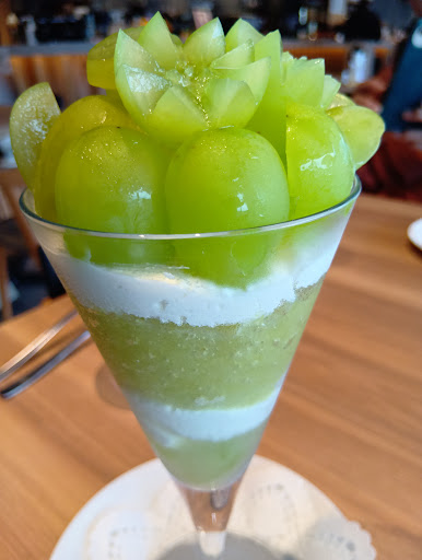 Read more【初訪店】カフェを利用。 食事も出来るが今回の目当てはフルーツパフェ! 駐車場は広いが人が多く、混雑はしてるが渋滞までではない程度。 12時頃だった事もあり、先客は8組ほどだったが、30分程度で席に案内があり、思った程の待ち時間は無かった。 オーダーはタブレット。 季節のパフェ1980円(シャインマスカット)をオーダー。 ちなみに妻は桃。 パフェは美味しいのだが、半分程、食べた所でギブアップ! いい歳こいたオッサンには甘いんだよね。 まぁ、パフェだから甘いよね笑 オッサンが残したパフェは妻がキャッキャッ言いながら完食。 そんなワケでスイーツ好きな人にはオススメ! 俺ちゃんの様なオッサンでもランチメニューがあるのでアウェー感は少ない感じではあるが...
