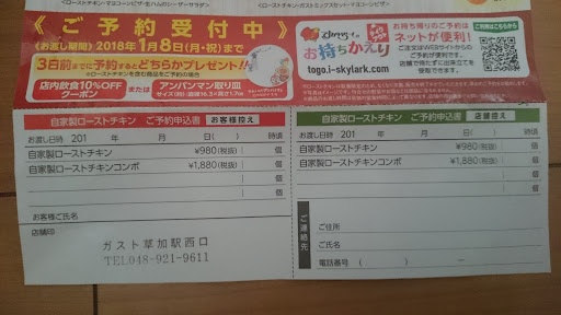 Read more日曜日の昼に伺いました。 日曜日なのでかなり待つだろうなーと覚悟はしていましたがすんなり入れました。 駅前なので店内小さいと思っていましたが思っていたより広く店員が多いのですんなりいきました。 席案内も早い。オーダーボタン押すとすぐ対応してくる。食事が出てくるのが早くでビックリしました!小さい子供もいたのであまり騒ぐ前にすっと食事ができたのでありがたかったです! トイレが見えるのと私たちのテーブルを通らないといけないなのでいったりきたり人がくるのはしょーがないことですがやっぱり気になってしまいますね。 子供たちはソフトクリーム食べながらご満悦でした!ガストのクーポンもほんと感動させられます。本日はソフトクリーム子供の数36円で注文ができました。 チラシを見ていたら今回ローストチキン980円3日前までに注文でアンパンマンのお皿かガスト飲食10パー割引がもらえるみたいなのでローストチキンをクリスマスイブに頼みました。楽しみにです...