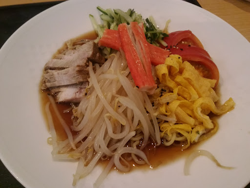 Read more冷やし中華をどうしても食べたくなり、ふらりと訪問。 よくある台湾?中華?なお店。 麺とチャーハンや定食が豊富な感じですが、ここは冷やし中華を。 棒々鶏麺や海鮮冷やし中華などもありますが、定番の五目をチョイス。 具材はチャーシュー、もやし、トマトに錦糸卵、キュウリにカニカマ。6目? お味は普通(笑)まあ、コレを食べたかったので良いのですが。 ツレは麻婆麺セット。まあまあ辛めのようで汗を...