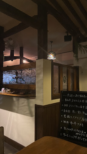 Read more隠れ家なようなお店。 住宅街の奥にひっそりと佇んでます。 駐車場はなく100メールほど先にコインパーキング。 オムライスが食べたくて利用しました。 料理の提供はゆっくりですが、ジャズが流れ、ステンドグラスや味のあるインテリアに囲まれながらマッタリと贅沢な時間を過ごすことができました。 こだわりの料理も大変良いかんじ! オムライス◎ パリパリピザ◎ 焼きナス◎◎←抜群 店主夫妻の気遣いと楽しい会話も嬉しい味付け。...
