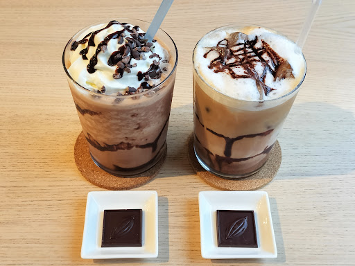 今回はフローズンカカオラテとモカチーノをいただきました。 フローズンカカオラテは冷たくて甘くてとても飲みやすいです!お子様が好きな王道チョコレートドリンクだと思います◎ モカチーノはチョコレートとミルクとエスプレッソで作られていて、甘さは控えめですっきりとした後味。甘すぎるのが苦手…という方にオススメです。とても美味しいです✨