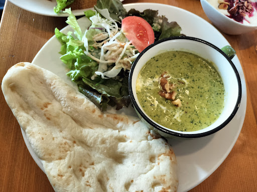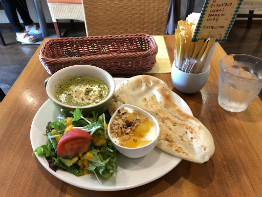 Read moreランチメニューのプレート料理 ナンカレーを頂きました。920円でドリンクつきです。レッドとグリーンから選べて今回はグリーンをお願いしました。 美味しい!カレー大好きなんですが優しいお味で辛いのが苦手な方でも全く問題ないです。クルミがカレーにもヨーグルトにも入っていていいアクセントになってます。 ナンがあまり好きではないのですが、ここのナンはモチモチしていて油っぽくなくさっぱりしていたので非常に食べやすいです。ナンのおかわりは150円でできるそうなので男性にも十分な量です。 店内はこじんまりしていて落ち着きます。清潔感も○...