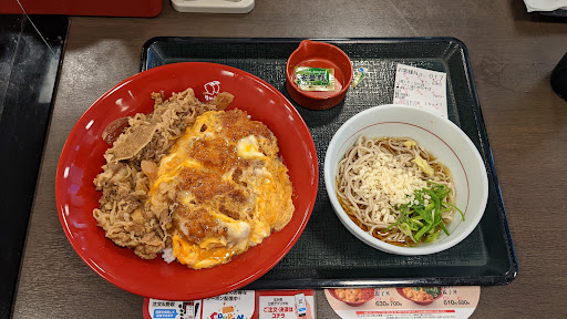 カツと牛のあいのりを。カツの揚げたて提供ということで、10分弱時間がかかる。カリッカリで美味しいが、できたてと時間の勝負はどちらが譲れないか。時間のないときは要注意。水とお茶のセルフピッチャーはなかなかよい。 そばもうどんも旨いが、うどんの冷や...