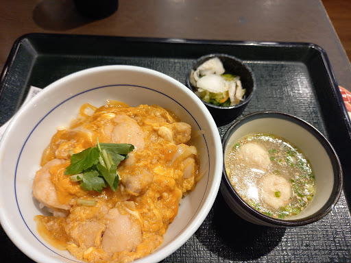 大きめの鶏肉がゴロゴロ、卵もとろとろで、甘目の味付けで、私好みです。 初めて食べましたが、美味しかったです。 鶏だんごスープもあっさり味で熱々です。 白菜等の漬け物は、少し塩辛かったです。 ご飯は小にしましたが、丁度良い量でした。