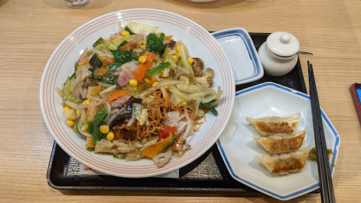 彩り野菜の皿うどん。と、3個ぎょうざ。 リンガーハットに行くと、ちゃんぽんより皿うどん。それが野菜がいっぱい取れ...