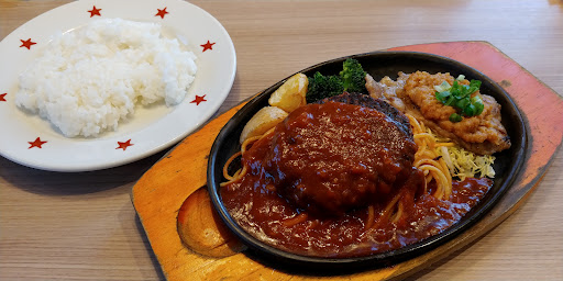 Read moreステーキやさんですが、私は「どんハンバーグ」が一番好きです。粗挽きハンバーグもありますが、どんハンバーグの方が個人的に美好きで、かつファミレスハンバーグの中で一番美味しいと思ってます!とはいえステーキも美味しいので、私がハンバーグ、主人がステーキを注文しシェアして頂く事が多いです。 料理はライスとスープバー料金込みなのですが、このスープがこれまた美味しくて、よくある色つき汁ではなくて具がしっかり入っていてセットスープとは思えないレベル。 ステーキ用テーブルソースは少し味薄めなので、刺身醤油みたいに付け汁にしていただいくと丁度良い塩加減になり、肉の味もしっかり楽しめます。 私が行く休日夜間の時間帯には他の方がいうような変な店員は居ません。 今時ネット等の割引券がない珍しい店なのですが、元々コスパが良いし、吉野家の株主優待券が使えるので持っ...