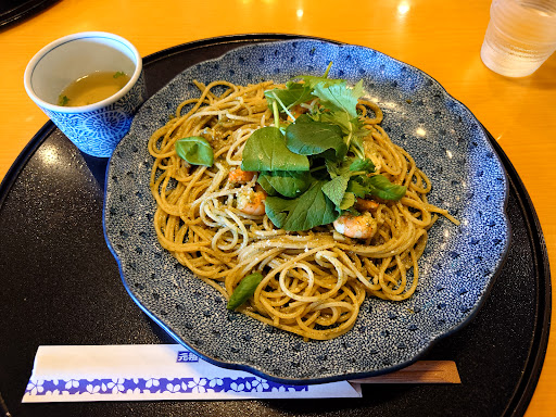 Read more和風パスタが、食べたくなって、高校生のころに、よく通った五右衛門を思いだし、近所のお店に、行って来ました。 今夜は、冷製パスタな気分で、パスタ、選べるサラダ、選べるドリンクで、セットにしました。 サラダは、大根サラダだけど、昆布と和風のだし粉?であえていて、あら、うまい。 パスタは、オオバや、ミョウガ、ネギ、のりなど、わんさかと、にぎやかな香味野菜と、さっとしつこい油を落とした、豚肉をまぜこぜして、ゴマ味のやさしいソースで、美味しいこと。 高校生のころは、明太子パスタ専門だったけど、大人になったじゃんって味で、大正解。 星一つ落としたのは、器のフチに、垂れたソースが、べったりと、そのまま出てきたこと。 料理人さん、美味しいは、...