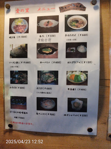 Read more食事だけじゃ無いんです❗ 昨日、初めて利用させていただきました。鳥の炭焼きを自分達で七輪で焼いて頂きます。メニュー写真より盛り良かったかも~(^-^)(食事の写真が無くてゴメンナサイ) 鳥料理苦手な方は、ダゴ汁(鳥出汁の野菜とデンプン団子のお汁です。鳥の出汁~💦って分からないほどお野菜の出汁も確り出てました❗アッサリ薄口醤油味) 今の時期、素麺流しもやってます❗そのソーメン流し台が驚きの品物…それはそれは大きな石にソーメンの流れ道が作ってあって、普通のソーメン流し台の十倍程でしょうか~😲 11月からは、ソバもあります。