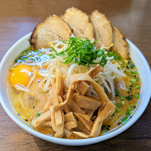 チャーシューは味が染み加減ナイス。 味の広がりもよろしうまし。 味噌スープには黒&白ゴマが入っており香ばしい。 ニラの香りもアクセントになりよろしうまし。 麺は中太幅広な感じでスープとの絡みてぃ良し。 美味しかったです、...