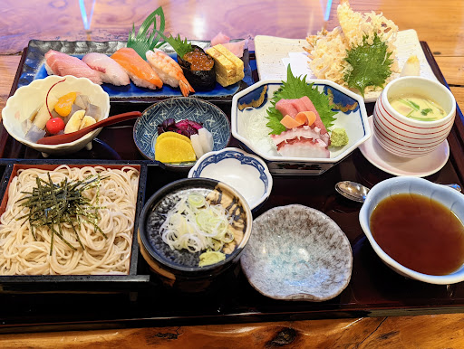 次はそばを一気にすすりあげます。 コシあり、風味あり🐜喉越しもよろし👌 寿司&刺身は鮮度100%のフレッシュフィッシュ🐟 身の歯切れも良く、優しく噛むだけで身がスッと切れます🦷 お待ちかねのデザートはあんみつです🍯 寒天のぷるるん食感、程よい甘みの黒蜜🍯 美味しかったです、...