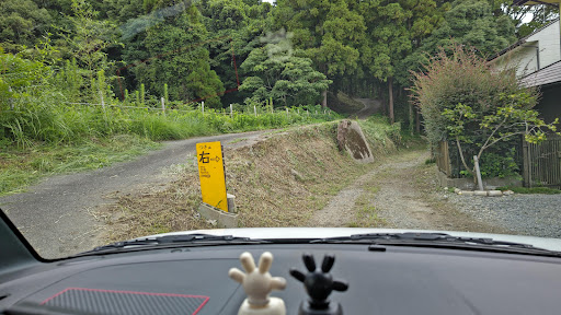 細い砂利道を進むと古民家のカフェらしきものを発見。でも丁度閉めちゃいました…って言われ唖然…