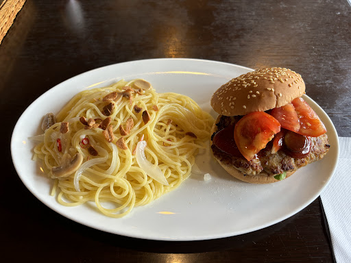 サラダは本当にほんのちょっとでした。満足度は低いです。ドレッシングは美味しい。 写真撮り忘れました。 ペペロンチーノは、期待よりは美味しくない。味付けが微妙というか、薄いというか…。お勧めしません。 ハンバーガーは意外に美味しかった。ただ、ポテトが欲しくなる。