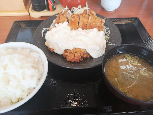 ☆テイクアウトで、唐揚げを頼もうと伺いました。 店内に3組ほどのお客様。 テイクアウト待ちが2名。 テイクアウト注文の先客が1名。 そして、私… …店員さん…沢山…いますね…おお忙しいですね…いらっしゃいましたけど…チラ見w…いらしちゃいけなかったかな…神様じゃないので帰りました🥹 沢山、テイクアウトの袋が置いてあったので、作り置き?みたいな口コミは正解ですね。 来店客1番、テイクアウト予約2番、テイクアウト飛込みは低辺…?そんな感じですよ😥 ★ねぎ塩やきとり定食を頂きました。 ある程度、客がいるだけで提供スピード予想以上に遅くなったな。 前回のスピードは全く感じられない。スタッフによるのか… ねぎ塩やきとり?塩っぱい。薄い。 ★チキン南蛮定食を頂きました。 初めて入ったか、2回目か…とにかく、提供が早い。作り置きでしょうか。 まあ、安いので仕方ないかな。 タルタルソースは、卵がゴロゴロ。 チキンが薄いね。サイズ小さくして厚くしてほしい。衣に負けちゃうから。 味噌汁がトロ...
