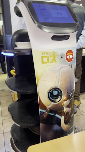 ランチメニューを注文すると10分しないうちにメニューが猫型配膳ロボットとともに運ばれてきました。 未だに慣れませんが、ネコ自体は好きなのでどことなく和みますね。