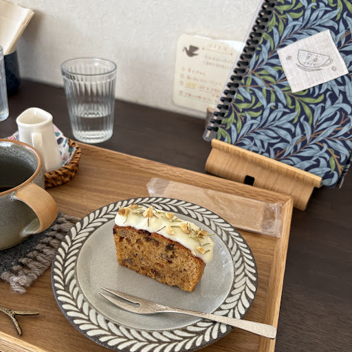 Read moreほっこり、落ち着いた雰囲気で一人でもゆったり過ごせます。 コーヒーも美味しいし、キャロットケーキも素朴な生地としっかり酸味のあるフロスティングが美味しかったです。 レジ前で販売されてる雑貨も素敵だし、お店の全てが可愛いです。